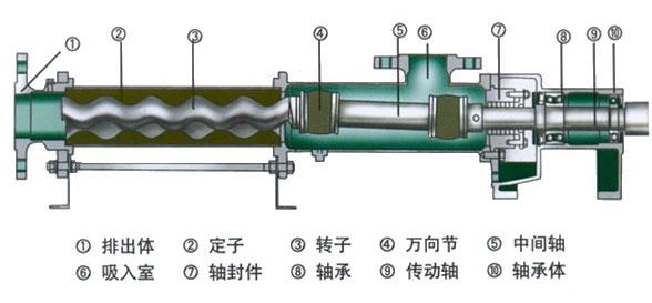這種泵零件少,結(jié)構(gòu)緊湊,體積小,維修簡單,轉(zhuǎn)子和定子是本泵的易損件,結(jié)構(gòu)簡單,便于裝拆.